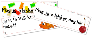 Druk, vou en maak jou eie paddaprins of vou ‘n padda wat spring. Trek uitgerekte paddasprongpatrone met bordkryt op die speelgrond/mat of op velle papier. Beskerm die papier met breë verpakkingskleeflint, plaas dit in ‘n lêersakkie of lamineer. Laat die kinders die roete met die papierpadda loop of gee ‘n witbordveselpen om die lyne mee na te trek. Watter letters hop ook so?