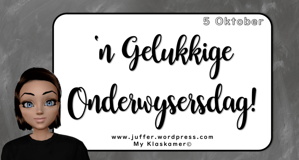 So aan die begin van ‘n nuwe (en laaste) kwartaal vier ons Wêreld Onderwysersdag. Onthou om mekaar ‘n bietjie meer te waardeer en te ondersteun.
